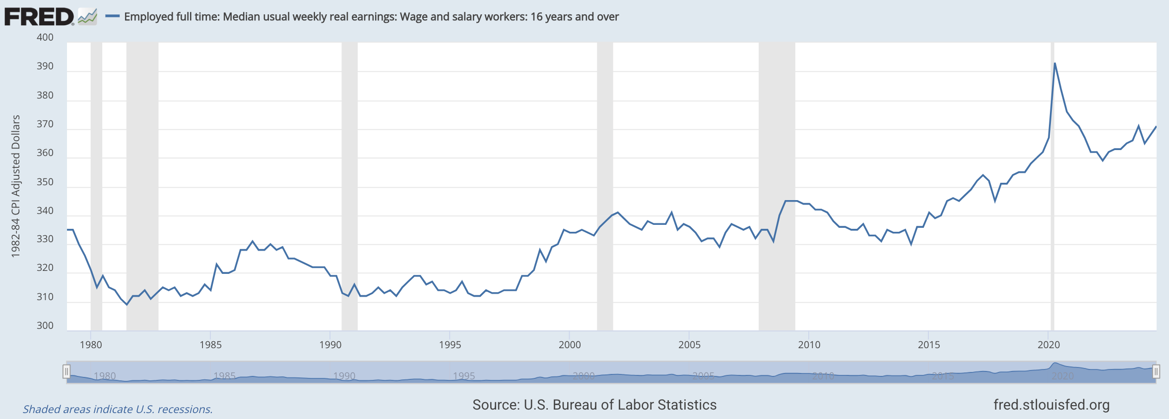 “Come again? Output per worker more than doubled during those years, but the real wage of typical workers hardly budged? That’s outrageous. I’m the typical worker. The economy is booming over time and half of us are getting nowhere?”