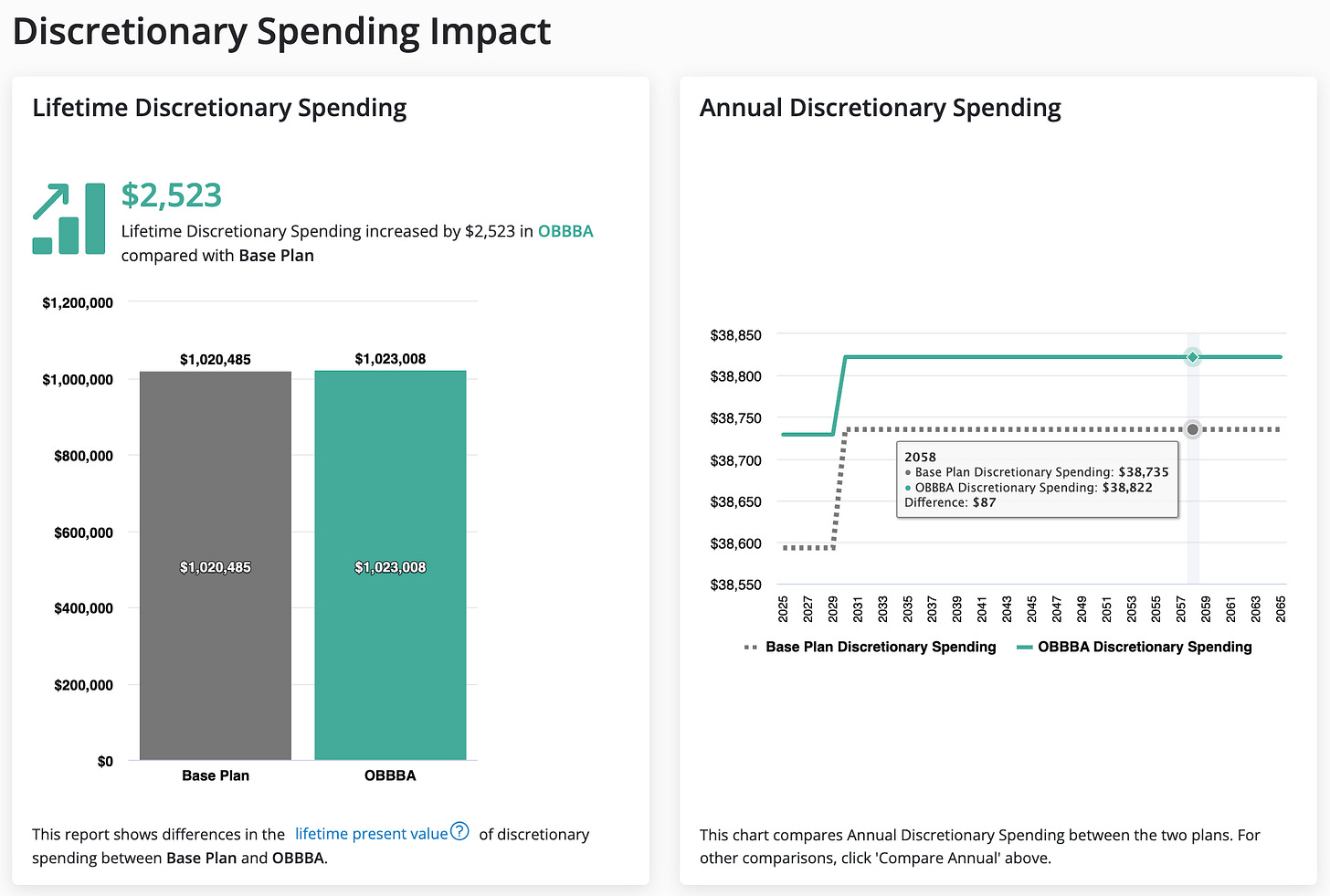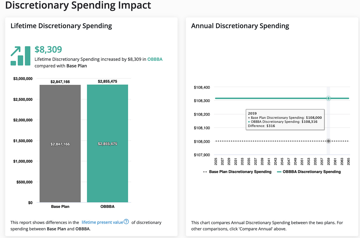MaxiFi was recently ranked among the top three Best Financial Planning Software of 2025 by Bankrate. It’s just been fully updated for OBBBA, i.e., the program’s default system is now OBBBA. But you can specify, under Settings and Assumptions, the continuation of pre-OBBBA law, namely The Tax Cut and Jobs Act.