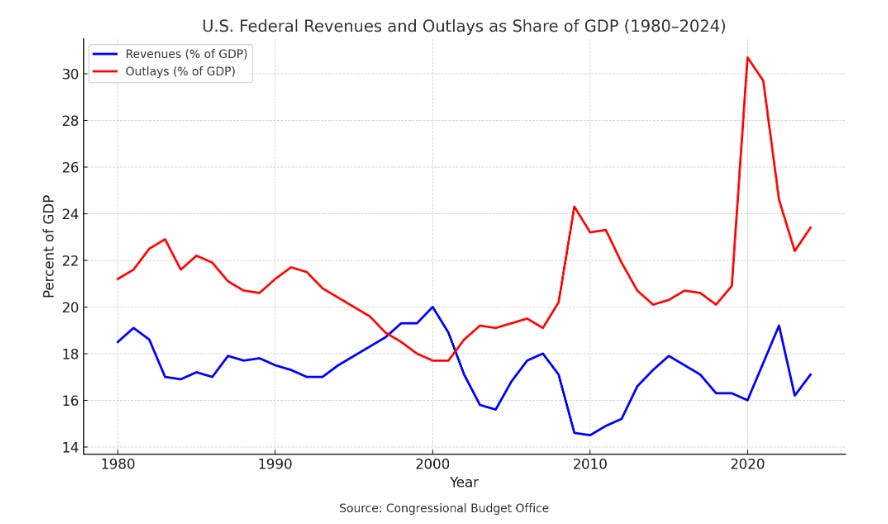 OBBBA will maintain, if not widen the wedge between outlays and receipts. Hence, the bill’s passage represents a decision to further delay addressing our fiscal imbalance. And with each year’s delay, we let current older generations further off the hook and put our children further on the hook.